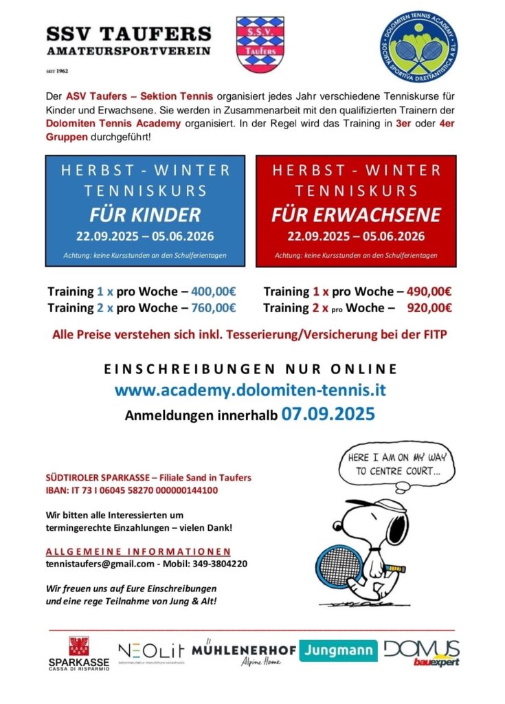 Willkommen bei der der Sektion Tennis im SSV Taufers!